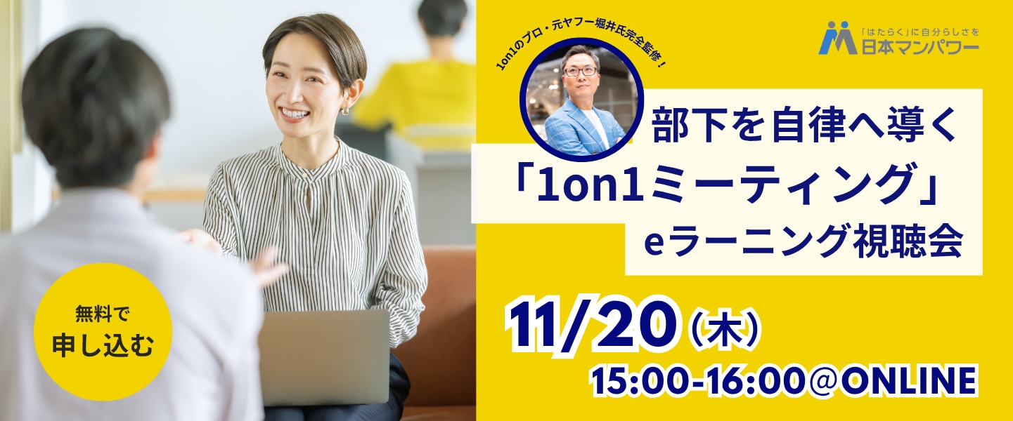 eラーニング【部下を自律へ導く「1on1ミーティング」】の詳細はこちら!