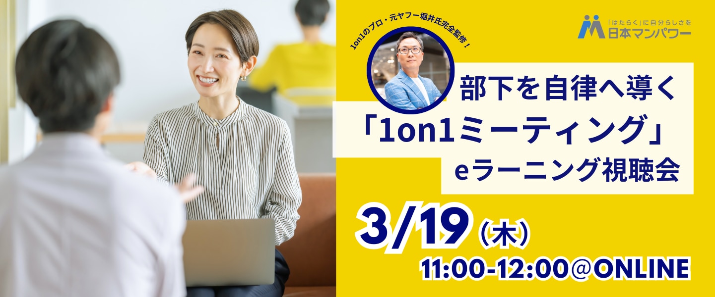 eラーニング【部下を自律へ導く「1on1ミーティング」】の詳細はこちら!
