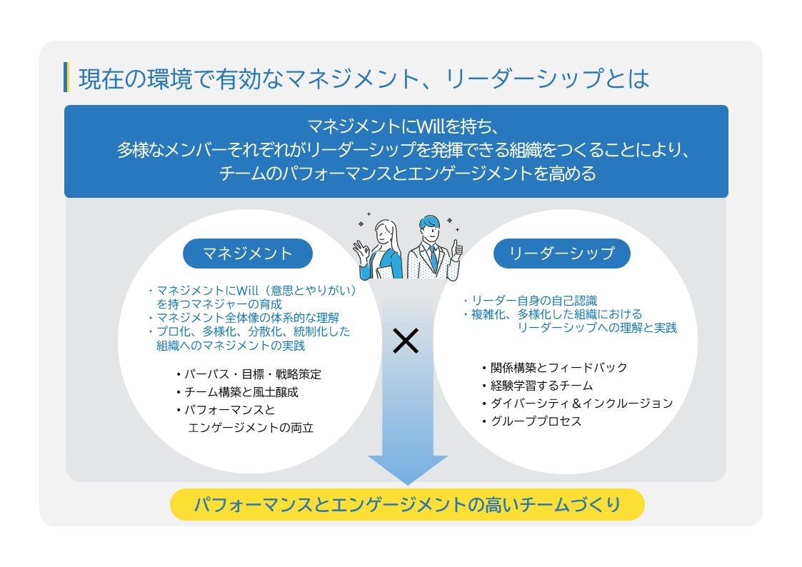 こうした状況を踏まえ、当社では「1on1」「チームマネジメント」「シニア部下との関係構築」「キャリア面談」の4つのテーマに焦点を当てたコンテンツを開発しました。eラーニング/通信教育の単体での導入はもちろん、当社が実施する集合研修と連動することでより高い学習効果を期待できます。本製品が、次世代リーダーの育成はもちろん、現在のマネジャーのスキル向上にも寄与し、企業の人材戦略の一助となることを願っております。