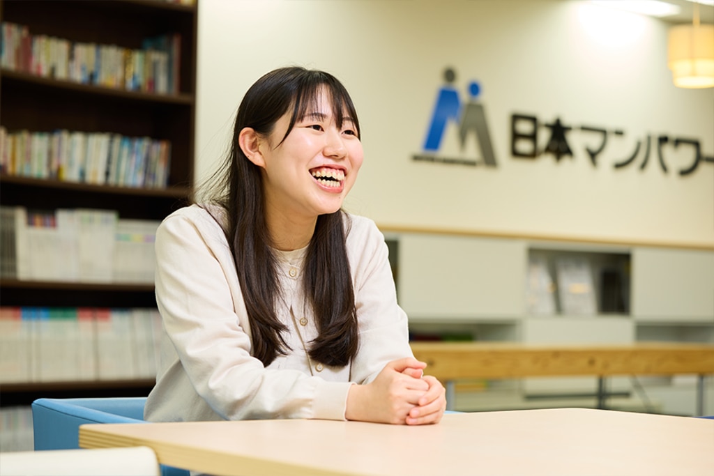 ただ、その後はやっぱりうまくいかず、苦戦をしていた中での合同企業説明会でした。出展一覧で、日本マンパワーの社名にならんだ「キャリア研修」という文言を見つけて……。心のどこかで、キャリアや人材育成をまだ諦めきれていなかったのかもしれません。会社説明を聞いてからは、説明会の雰囲気や採用担当者の親身な対応に惹かれて、入社を決めました。