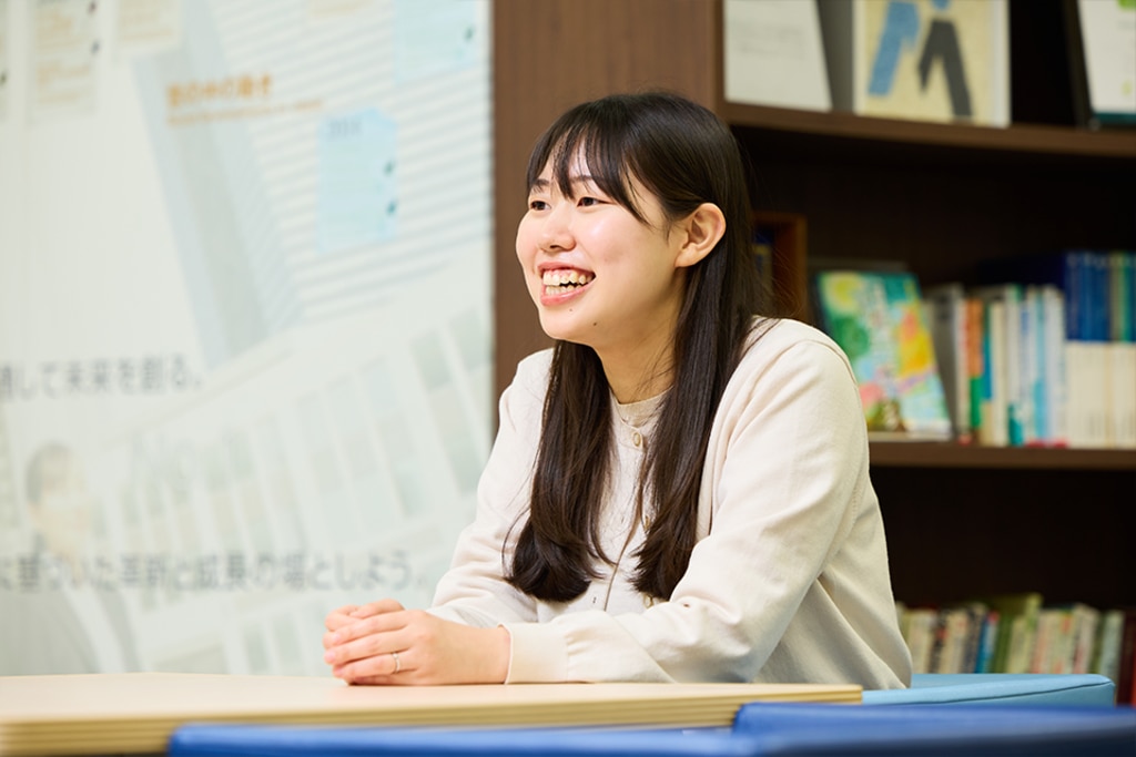 一つ目は、「笑顔を忘れない」。これから先、どんなに忙しくなったとしても、楽しさを自分で見出しながら仕事をしたいです。それに、笑顔がない人に相談ってしにくいですよね。誰かにとって、常に相談しやすい、頼みごとをしやすいような人柄でありたいと思うので、笑顔は絶対に忘れないようにしたいです。